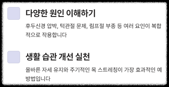 - 후두신경 압박: 목 근육 긴장으로 인한 신경성 통증
