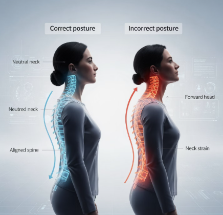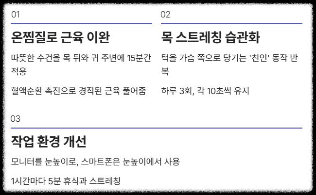 ✅ 관리: 올바른 자세 유지와 주기적인 목 스트레칭 필수