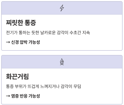 ✅ 특징: 찌릿한 신경통부터 묵직한 근육통까지 양상이 다름