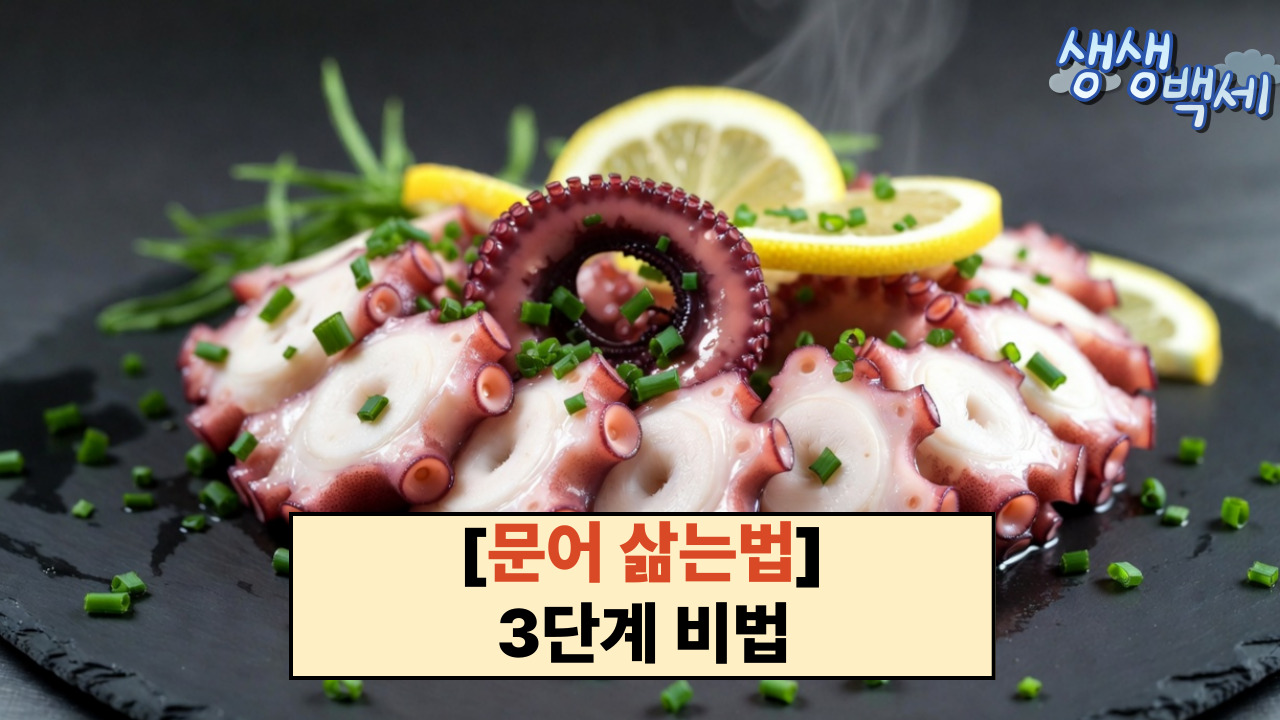 끓는 물에 문어를 바로 넣지 마세요. 다리 끝부터 뜨거운 물에 3번 정도 넣었다 빼면 다리가 예쁘게 말려 올라가 시각적으로도 완벽한 모양이 잡힙니다.