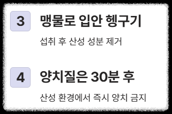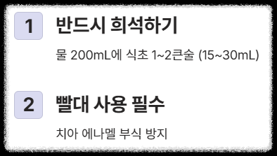 - 입안 헹구기: 섭취 후 맹물 가글로 산성 성분 제거