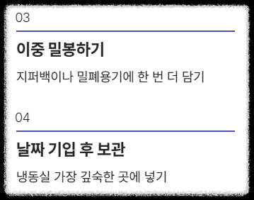 - 날짜를 기입하여 냉동실 가장 깊숙한 곳에 보관합니다.