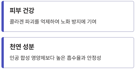 - 천연 성분: 인공 합성 영양제보다 높은 흡수율과 안정성