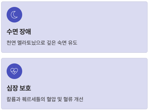 - 생체 리듬 안정화로 시차 적응 및 불규칙한 수면 패턴 교정