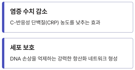 - 세포 보호: DNA 손상을 억제하는 강력한 항산화 네트워크 형성