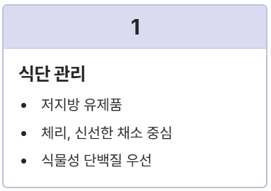 ✅ 식단: 저지방 유제품, 체리, 신선한 채소 중심