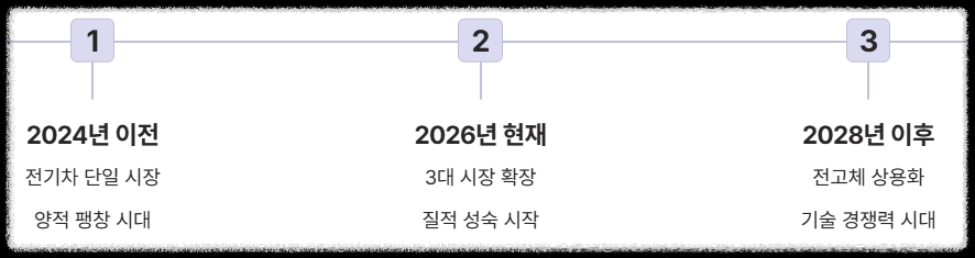 - 전기차 시장의 질적 성장: 보조금 의존도를 낮춘 저가형 LFP(리튬인산철) 모델과 프리미엄 전고체 모델로 시장이 양극화되며 수익성 중심의 구조 개편이 완료되었습니다.