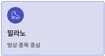 | 밀라노 (Milano) | 피겨 스케이팅, 쇼트트랙, 아이스하키 (빙상 중심) |