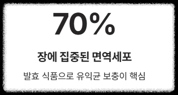 면역 세포의 70% 이상이 장에 집중되어 있다는 사실, 알고 계셨나요? 독감 치료를 위해 항생제를 복용할 경우 유익균까지 사멸할 수 있어, 발효 식품을 통한 보충이 매우 중요합니다.